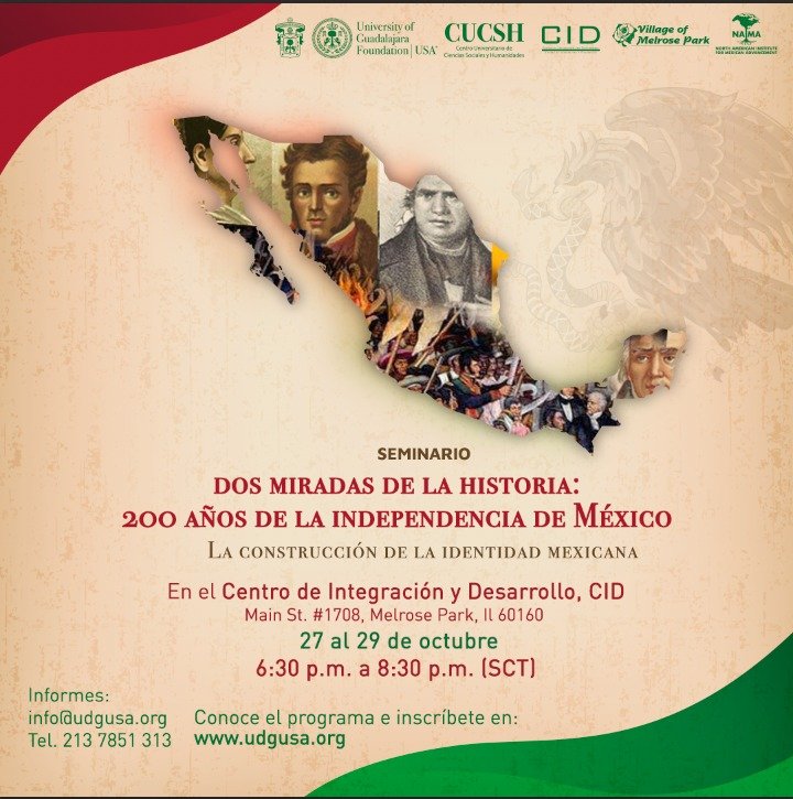 Para celebrar el bicentenario de la consumación de la independencia de México, la Universidad de Guadalajara a través del Centro Universitario de Ciencias Sociales y Humanidades (CUCSH) y la University of Guadalajara Foundation USA en colaboración con el Consulado General de México en Los Ángeles, el Centro de Estudios de México de la Universidad de California en Los Ángeles (UCLA), la Asociación de Jaliscienses Unidos en Acción (AJUA) y el canal 22, organizan el seminario Dos Miradas de la Historia: 200 años de la Independencia de México. La Construcción de la Identidad Mexicana.